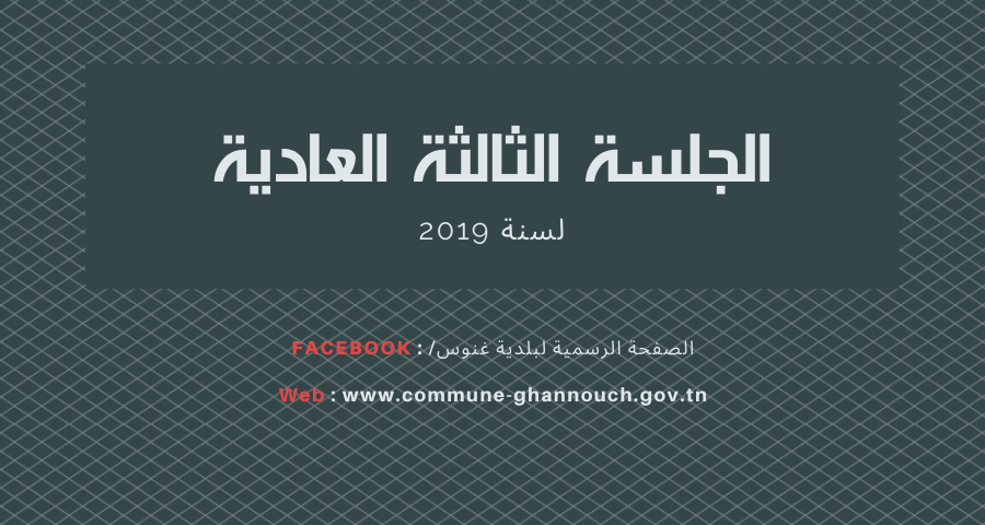 يتشرف رئيس بلدية غنوش باستدعائكم لحضور أشغال الدورة العادية الثالثة للمجلس البلدي بغنوش لسنة 2019 التي ستنعقد يوم السبت 31 أوت 2019 على الساعة الحادية عشرة صباحا بمقر قصر البلدية بغنوش، وذلك لتدارس المسائل التالية: