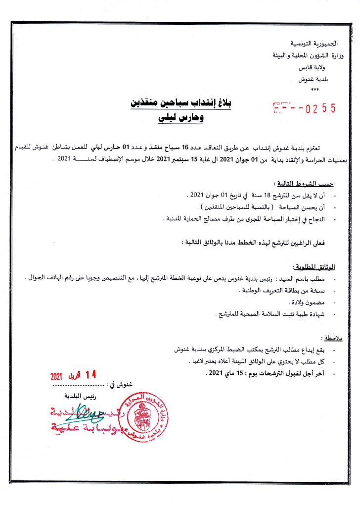 المستجدات انتداب سباحين منقذين By admin Last updated أبريل 15, 2021 0 0 Share 0 0 Share FacebookTwitterGoogle+ReddItWhatsAppPinterestالبريد الإلكتروني